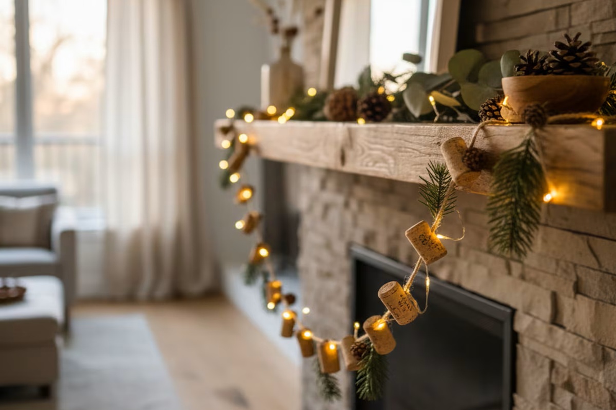 Garlands with corks: rustic and stylish decoration
